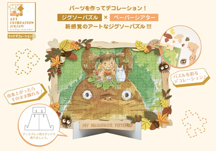 ◎ウッドデコレーション ◆組み立て方 STEP1:パズルを組む! STEP2:パーツを作ってデコレーション! STEP3:お部屋に飾って楽しもう! セット内容:108ピースジグソーパズル・木製デコレーションパーツ・紙製デコレーションパーツ・ディスプレイ用スタンド ・ピース請求用ハガキ・組み立て説明書・パズルのり・のりヘラ・接着剤 サイズ:29.5×21.5cm(完成時) パッケージサイズ:約22×17×5cm ※パネル不要 (c)Studio Ghibli 補足【ジグソーパズル】【アートデコレーションジグソー】【ジブリ】【となりのトトロ】【202207】【108-200】【色:グリーン】【色:ブラウン】