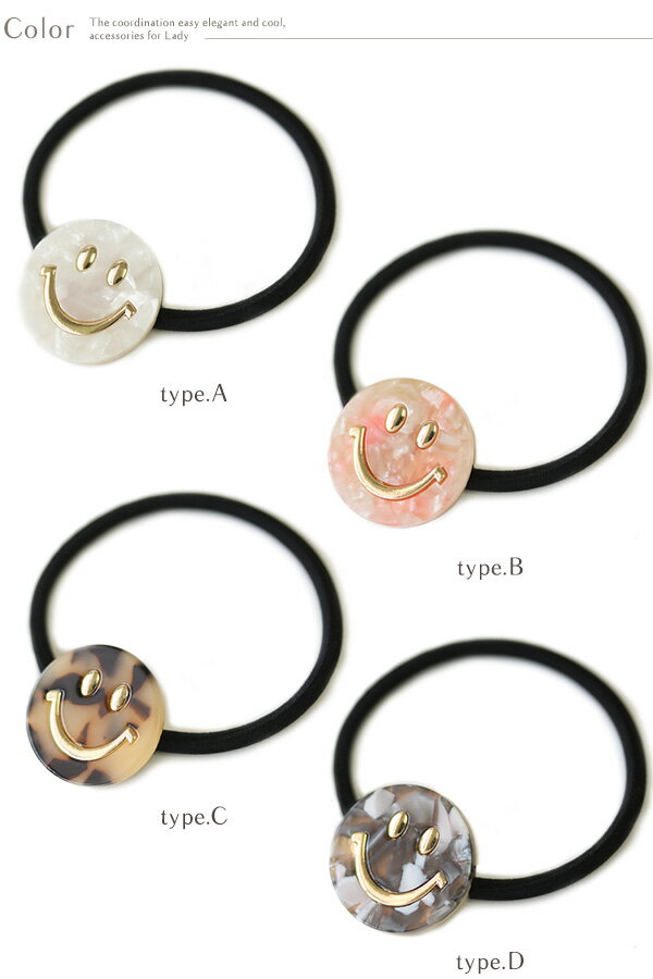 keyword :ヘアゴム レディース べっこう スマイル ヘアアクセ レディース■□ Item information - 商品説明 - □■ アセチ風なマーブル模様にゴールドの愛らしいスマイルモチーフが付いたヘアゴムです。