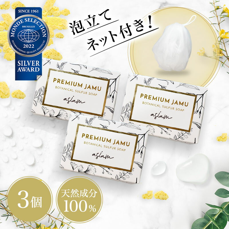 【泡立てネット付!】ジャムウソープ デリケートゾーン 石鹸| ニキビ 美白石鹸 プレミアム ジャムウ ボタニカル スルフルソープ 3個|天然成分100%のジャムウ 石鹸 デリケートゾーン 黒ずみ くすみ ケア|デリケートゾーン ソープ