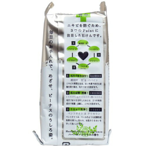 内容量 135g 成分 ■有効成分:トリクロサン、グリチルリチン酸ジカリウム■その他の成分:石けん用素地、エデト酸四ナトリウム四水塩、ヒドロキシエタンジホスホン酢液、濃グリセリン、薬用炭、カオリン、ベントナイト、パパイン、香料 注意 ・湿疹・皮膚炎(かぶれ、ただれ)等の皮膚障害があるときには、悪化させるおそれがあるので使用しないでください。