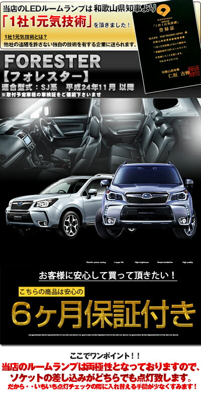 商品説明 フォレスター ルームランプ 和歌山県知事から一社一元気技術という賞を受賞した 当店オリジナルLEDルームランプ!当店で 現車 を確認したLEDだから安心して取付可能。