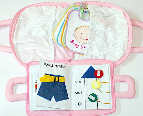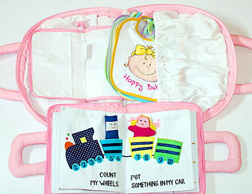 布絵本MY QUIET BOOK ベア ピンク英語刺しゅう版&マザーズバッグ"My Sweet Baby"&おまけつき ウィークリービブセットベビーフェイスマイスィートベビーギフトセット【知能開発レッスンブック】幼児教育選んで!!無料ギフトラッピング