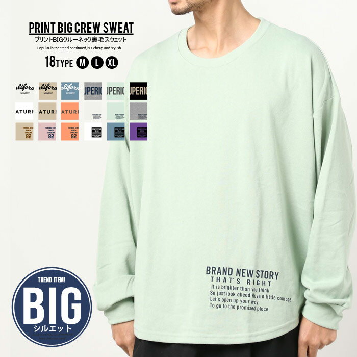 【送料無料】メンズ トレーナー BIGシルエット ビッグシルエット ビックシルエット スウェット スエット ゆったり 大きい 大きめ プルオーバー プリント 柄 カジュアル 長袖 トップス M L XL 秋服 冬服「849-122」