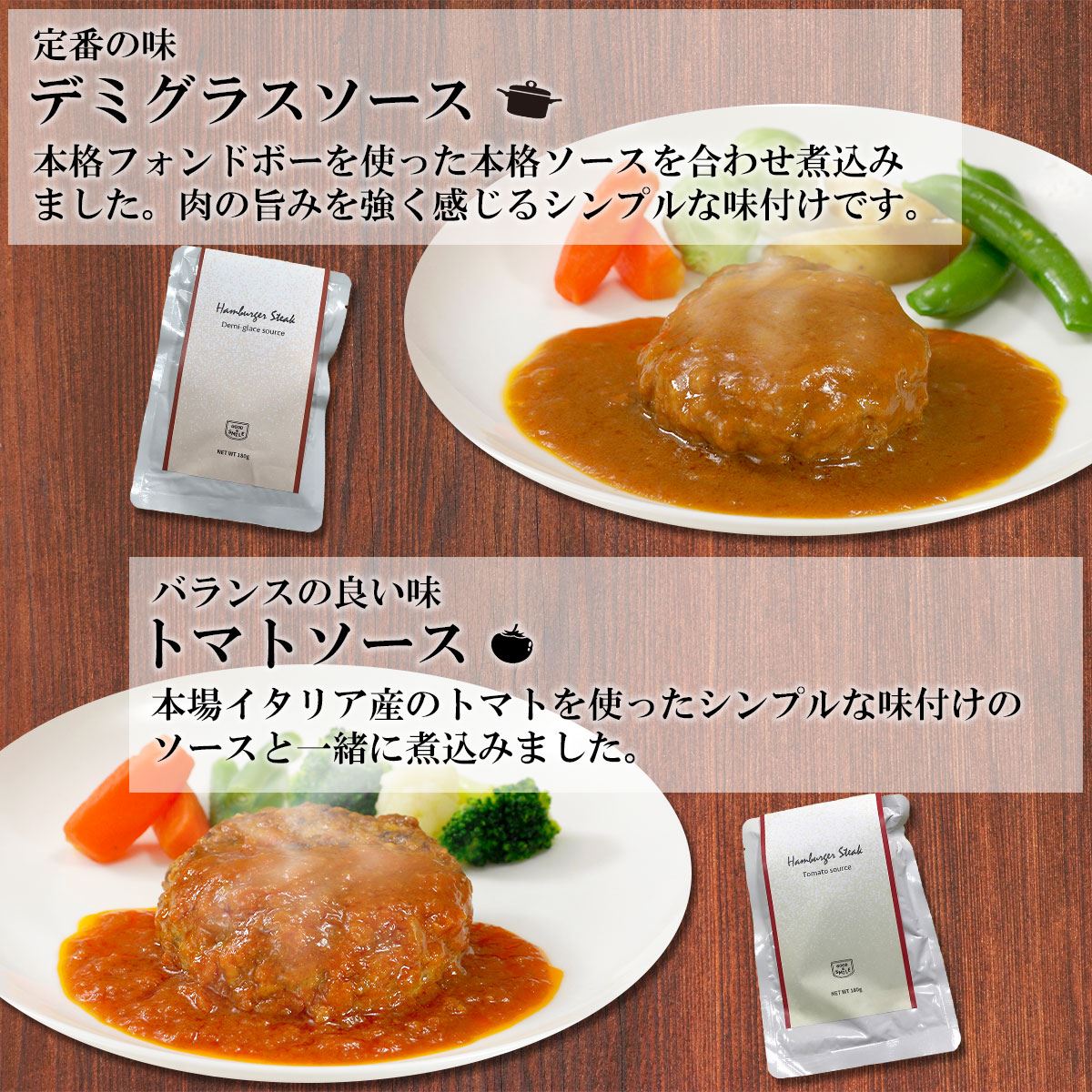 G7 レトルト 惣菜 ハンバーグ デミグラス と トマト の 2食 詰め合わせ 国産 牛肉 豚肉 を使用。